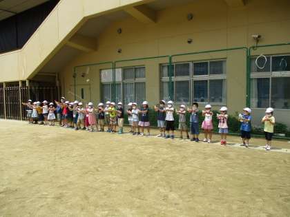 運動場や砂場で,水の動きや砂の感触を楽しみながら活動しました。