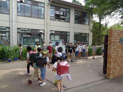 計画委員会と生活委員会の子どもたちが,朝のあいさつ運動を行っています。もうすぐ夏休みです。気持ちよく1学期が終えられるといいですね。