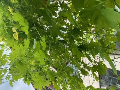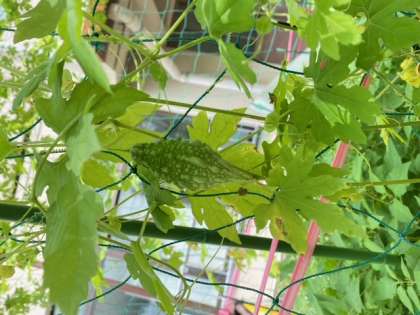 春に理科の授業で植えたツルレイシも大きくなり,いくつか実をつけ始めました。
