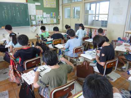 学習後,子どもたちは「字形に気を付けて書きました!」「ひらながだから簡単だと思ったけど,結びを書くのが難しかった。」など,それぞれの感想を話していました。