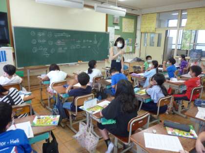 子どもたちは,「5線紙より上のときは,線にのっているように書いたらいいんだね!」「音符と音符の間は間隔を空けて書かないといけないのか。」と,書いていました。