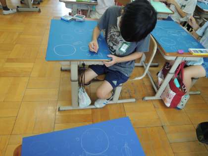 画用紙に下書きをしました。自分のお気に入りの場面を想像して表現しています。毎日少しずつ進めています。