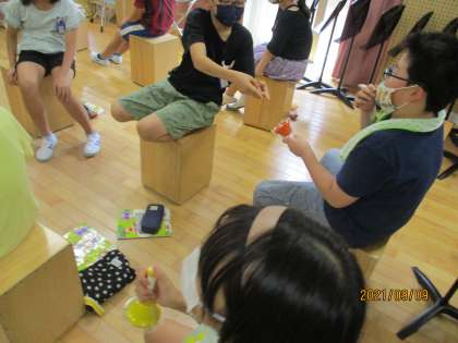 緊急事態宣言が出ているので,音楽では,合唱ができません。今日は,みんなが一音ずつハンドベルをもち,ひとつの曲をひと演奏しました。きれいな音を響かせていました。