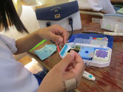 家庭科で習った裁縫の技術を使って,小物づくりに挑戦しました。一生懸命に,針と糸を使い,様々な小物を作っていました。「おうちの人にプレゼントする」という子もいました。
