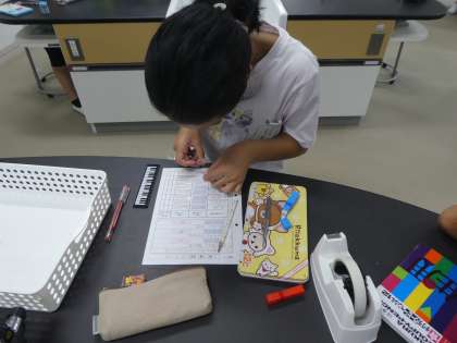 みんな一生懸命ノートにリトマス紙を張り付けていました。