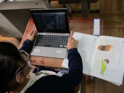 学校にいる生き物や学校で見つけたものを知らせる文章を書く準備をしています。
