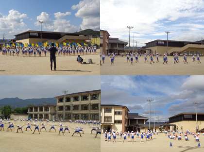 今週15日の金曜日はミニ運動会です。今年度も2学年ずつで,徒競走と団体演技の2種目を行います。緊急事態宣言が明け,運動場では,ようやく学年がそろって練習できるようになりました。かけ声などの声出しもできない中,音楽に合わせて黙々と演技に取り組む姿に感心しています。「今できることを精一杯」がんばっているところをご覧いただければと思います。