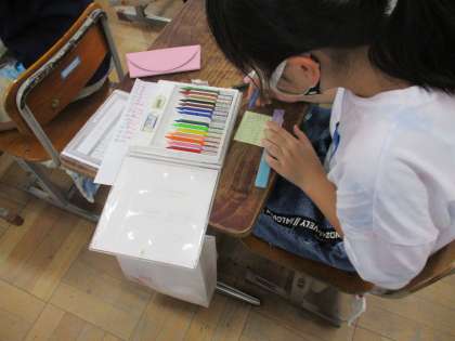 また,その感想を伝えたい!と言って,メッセージを書き,渡しました。学年が違っても頑張る気持ちは一緒です。子どもたちがお互いを励まし合い応援する姿は素敵でした。保護者の方も運動会では,南っ子が頑張る姿を応援してください。