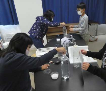 とけるようすをじっくりと見るのが初めてだという児童もいて,みんなとても興味をもってしっかり観察していました。
