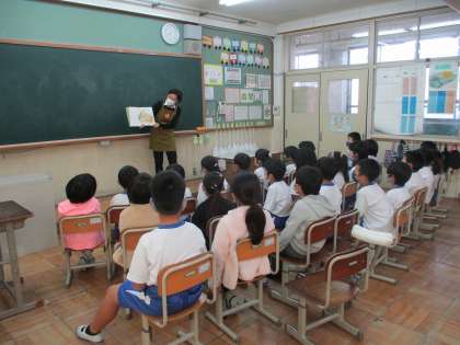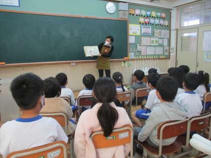 朝読書の時間に,1年生の各教室に絵本の読み聞かせにきていただきました。