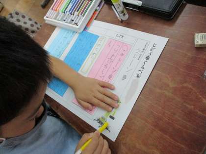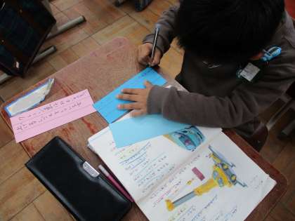 「じどう車ずかん」をつくるという目的意識をもち,意欲的に学習に取り組む姿が見られます。