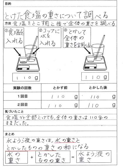 理科だより5年「水にとけた食塩の重さ」