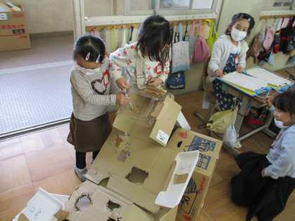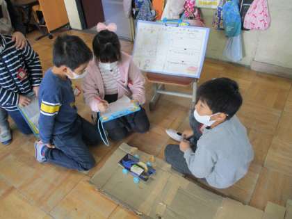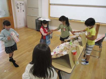 グループで協力して,どうすれば1年生が楽しんでくれるかということを考えながら作ってきました。