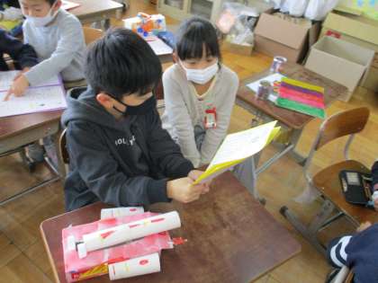 生活科の学習では,廃材を使って自分たちでおもちゃを作りました。