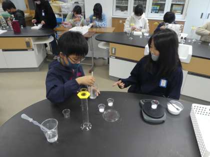 実験操作が食塩の時と同じなので,みんな慣れた様子で実験を進めていました。