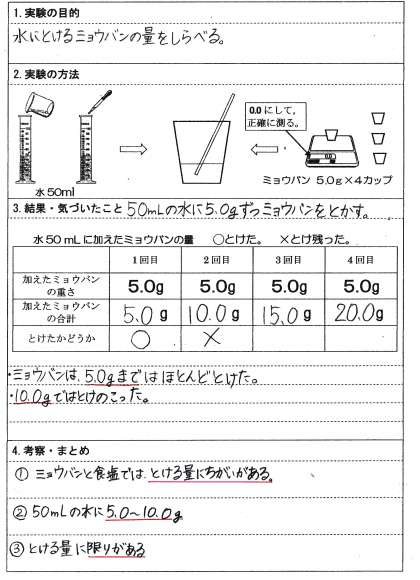理科だより5年「ミョウバンのとける量」