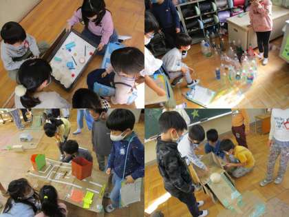 2年生のお兄さんやお姉さんたちが考えた遊びを,ラリー形式で体験させてもらいました。