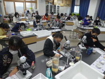 地層を作っている粒を,顕微鏡を使って,詳しく観察しました。