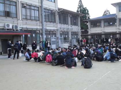 登校してきました。この後,出発式です。