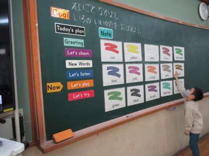 あいさつや気持ち,色に関する英語の表現を学習しています。