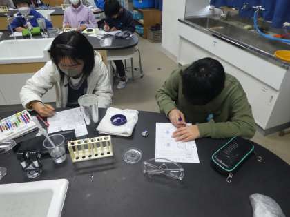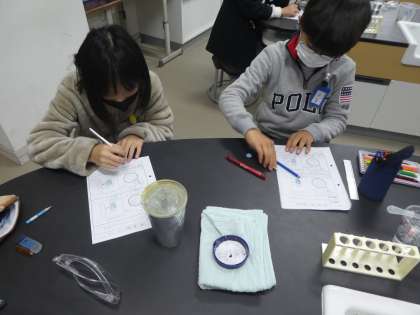 食塩水のろ液と,ミョウバンのろ液とで,実験を分担して調べました。