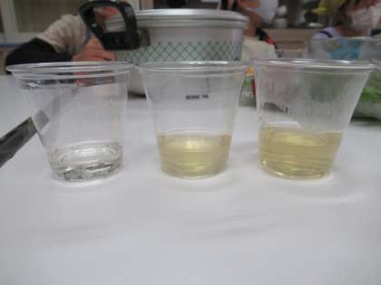 色味や香り,味など,五感を使いながら,こんぶだしやかつおだしの違いを味わっていました。とてもいい経験になりました。