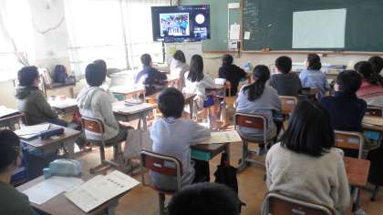 校長先生のお話の中で,修学旅行での写真や「いのちの歌」を歌う様子が流れました。