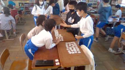 外国語科「What do you want?」では,「What do you want?」「I want 〜.」の表現を使って学習しています。お店屋さんとお客さんに分かれ,欲しいものを尋ねたり答えたりしました。集めた材料で最後にピザを完成させて,子どもたちは大喜びでした。