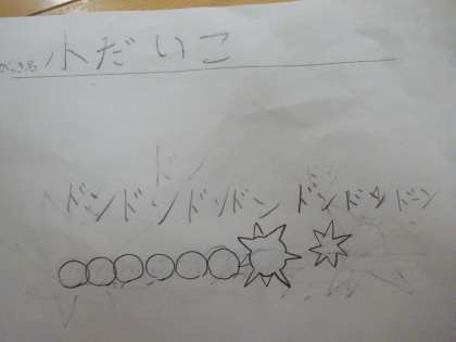 音楽の学習では,音楽室でいろいろな楽器を使って“まほうの音”を作っています。ウインドチャイム,シンバル,小太鼓などの音色に耳を傾け,グループごとに意見を出し合い,自分たちのイメージにぴったり合う音や音の組合せを探します。まほう使いになれるかな〜?