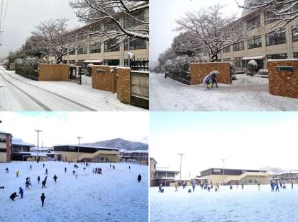 昨晩からの雪で,朝から銀世界でした。大雪は,時には困ることがあるのですが,子どもたちは,やはりうれしそうでした。登校中に雪玉を作って持ってくる子がたくさんいました。