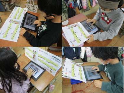 鍵盤ハーモニカの練習ができないため,GIGA端末を活用した学習に取り組んでいます。