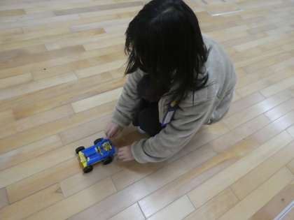 後ろ向きに走ったり,スピードが出なかったり,動かなくなったりと,いろいろ問題が起こる中で,原因を調べて,よく走るように修理をしている子ども達もいました。