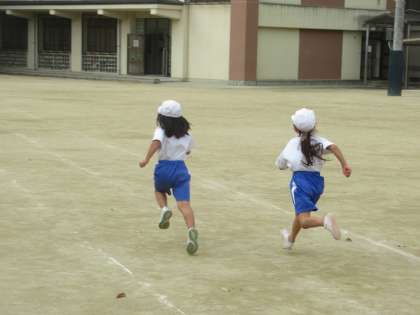 雨予報が見事に外れ,2年生になって最初の体育の時間。50m走のタイムを計ることができました。