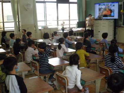 給食の準備の仕方や給食当番の仕事を栄養教諭の樋口先生に教えていただきました。