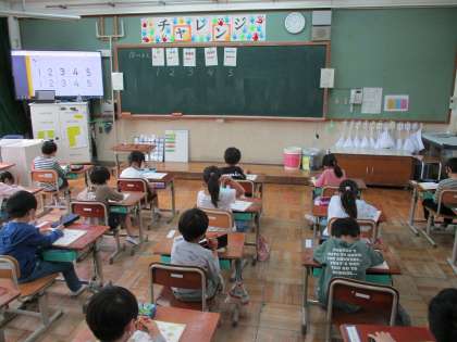 算数科では,数字の学習をしました。数図ブロックを数えて,いくつあるか考えました。「1,2,3,4,5」と読んで書いて,もっとやりたいという声がたくさん聞こえてきました。