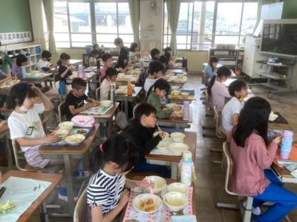 たけのこやたまねぎ,じゃがいもなどの春に美味しい野菜を使った「たけのこのかきあげ」を,子どもたちは喜んで食べていました。
