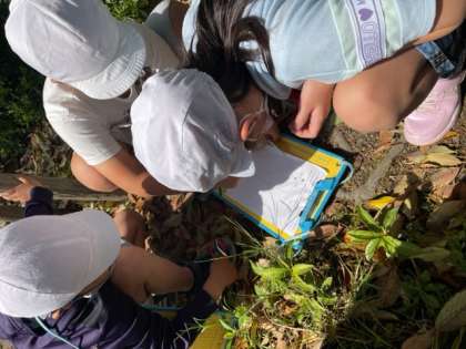 今日は,学校で見つけた植物や動物(虫)を虫めがねをつかいながら