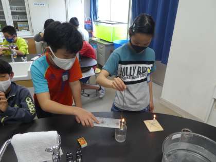 みんな興味をもって,ろうそくの炎の変化を観察していました。