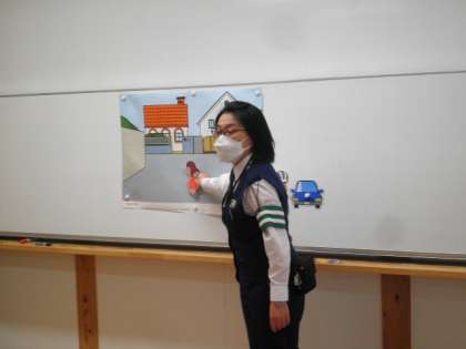 道路を横断するときに気をつけることや登下校中に潜む危険など安全な登下校の仕方について教えていただきました。