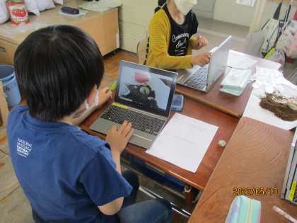 理科「季節と生物」の学習でカブトムシの幼虫を観察しました。大きさや形,色などをよく見てスケッチをしたり,気が付いたことを書きとめたりしました。幼虫が動くと子どもたちは「動いた!」と興奮して見ていました。
