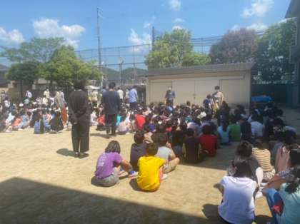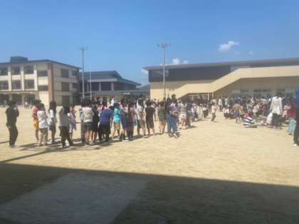 今日は,火災の避難訓練を行いました。避難するときは,煙を吸わないようにハンカチを口に当てる。慌てず静かに避難する。など,一人一人が真剣に訓練に取り組んでいました。