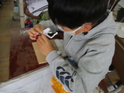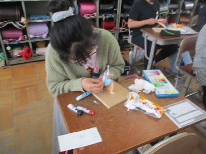 図工で,立体作品を制作しているところです。未来の自分を想像し,ポーズを考えながら紙粘土で自分づくりをしています。完成が楽しみですね!