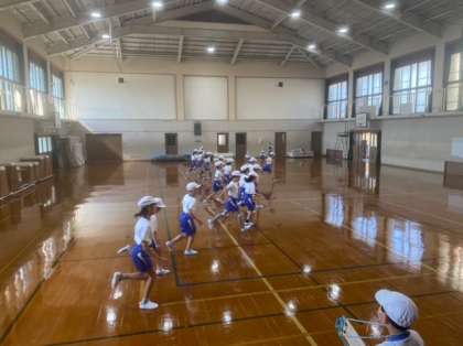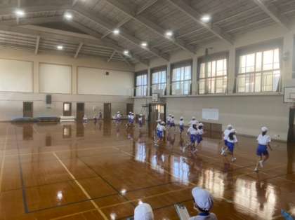 今週は,体力テストでシャトルランに挑戦しています。少しずつ速くなるドレミの音に合わせて,20mを繰り返し走ります。一人一人が自分の目標に向けて,一生懸命に走っていました。