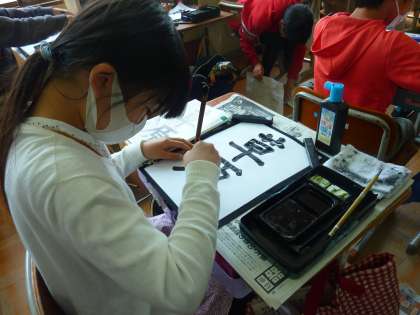 「『たれ』の中の部分は,文字の中心より少し右へずらす」など,ポイントを意識し,めあてを達成できよう一生懸命に取り組んでいました。