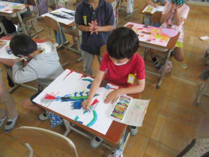 図画工作科「ふしぎなたまご」の作品の仕上げをしています。