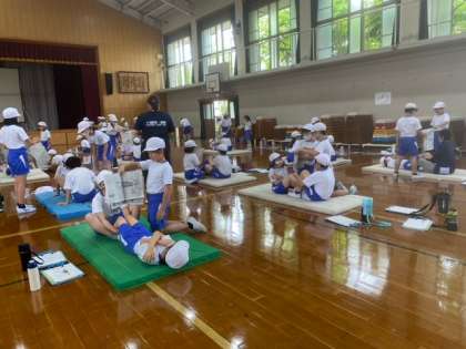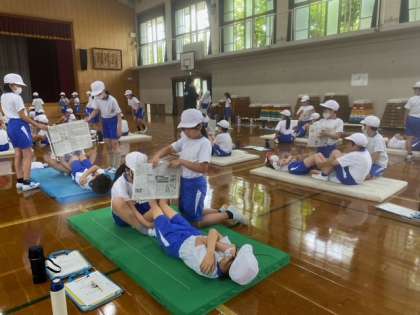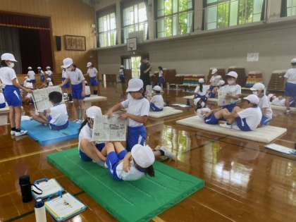 新聞紙を間に置いて,気を付けながら取り組みました。「お腹が苦しい…」「たくさんできた!」と言いながら頑張っていました。