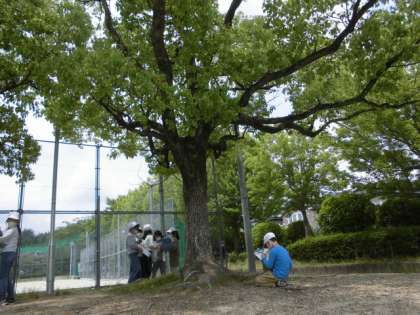 公園に植えられている樹木の話題から,自分のお気に入りの木を選びスケッチする活動をしました。