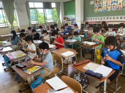 音楽科で学習している「歌のにじ」をリコーダーで演奏しました。自分のリコーダーの音色だけでなく,友達の音色との重なりを意識しながら演奏しました。お互いの音色がきれいに重なると子どもたちはとても嬉しそうでした。