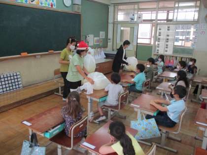 朝の時間に6年生が素敵なプレゼントを持ってきてくれました。1年生を迎える会のときにかぶる王冠を作ってプレゼントしてくれました。子どもたちは,「なになに」とサプライズでびっくりしていました。