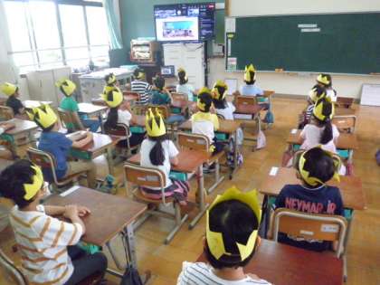各学年が1年生のために,学校生活のきまりや楽しみなどのムービーを準備してくれました。子どもたちは,お兄さん,お姉さんからのメッセージを前のめりになって見ていました。